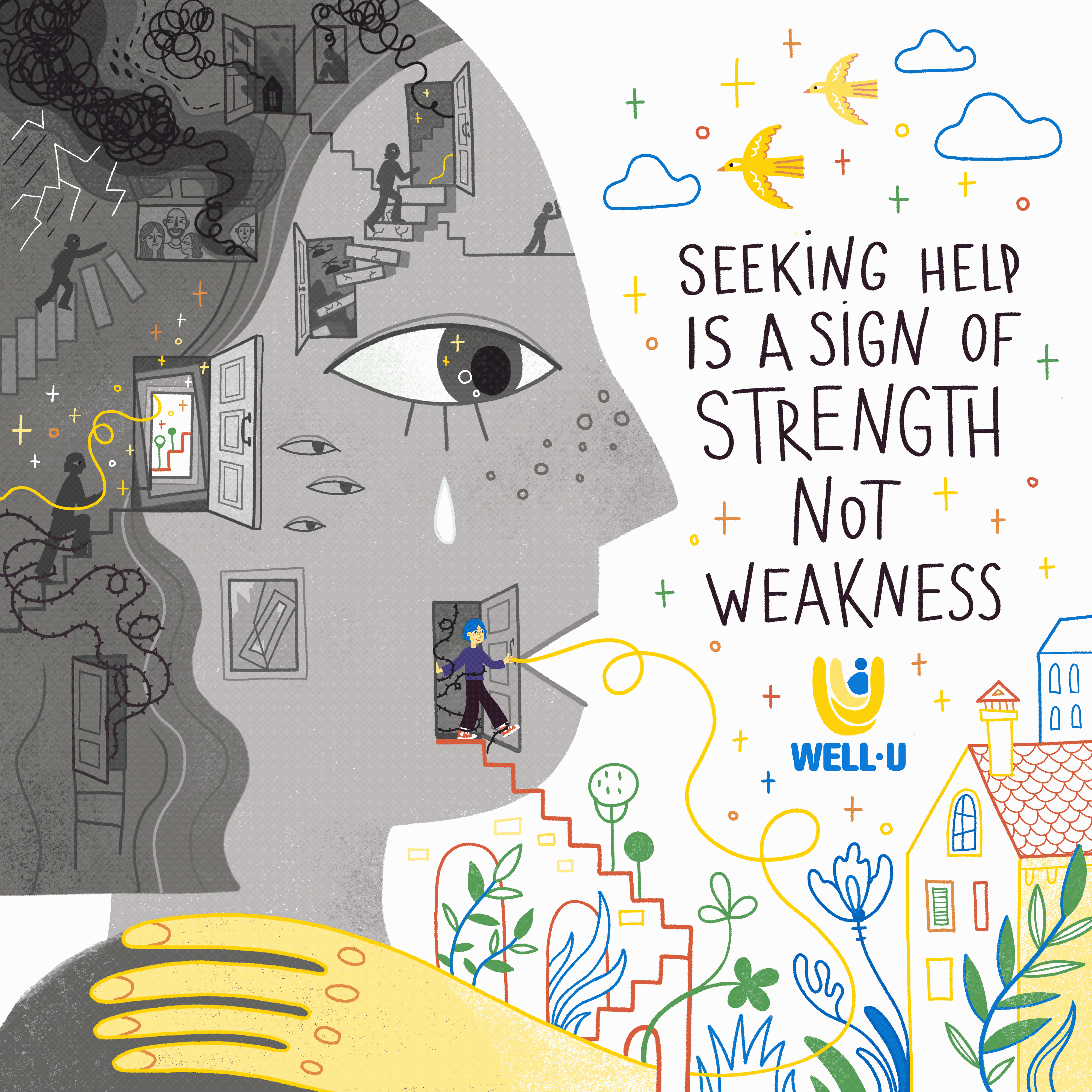 I also designed an illustration for a Policy Paper Well-U Project's Key Policy Recommendations for Mental Health and Psychosocial Support in the EU