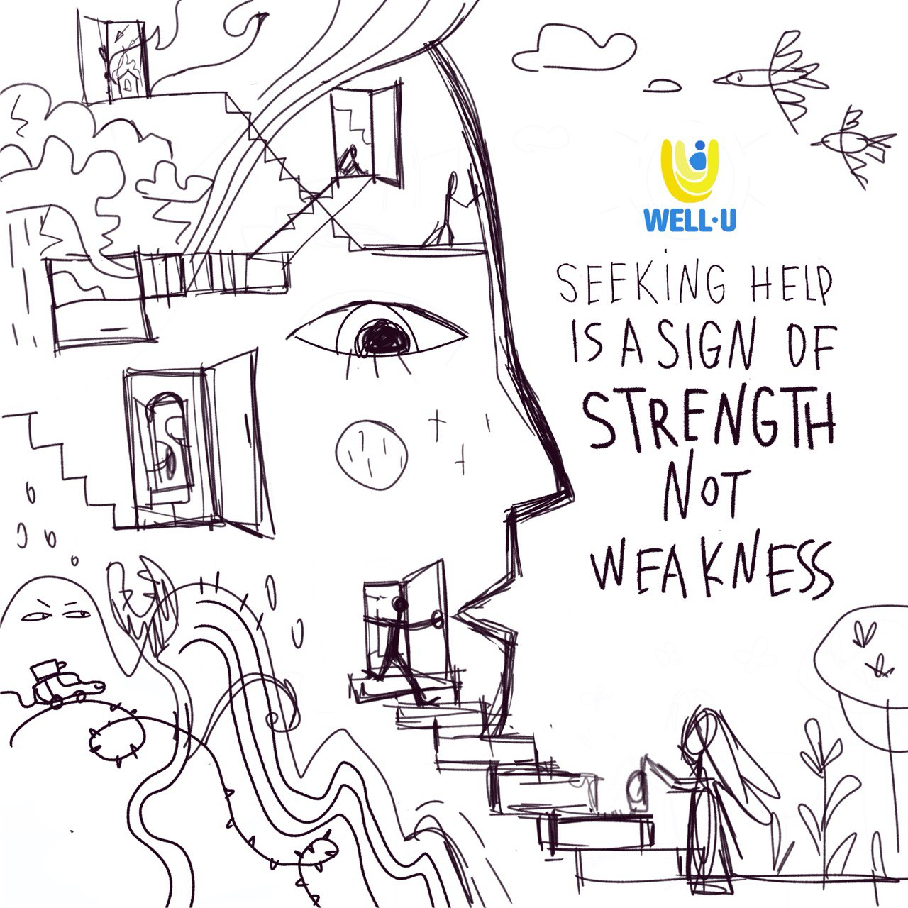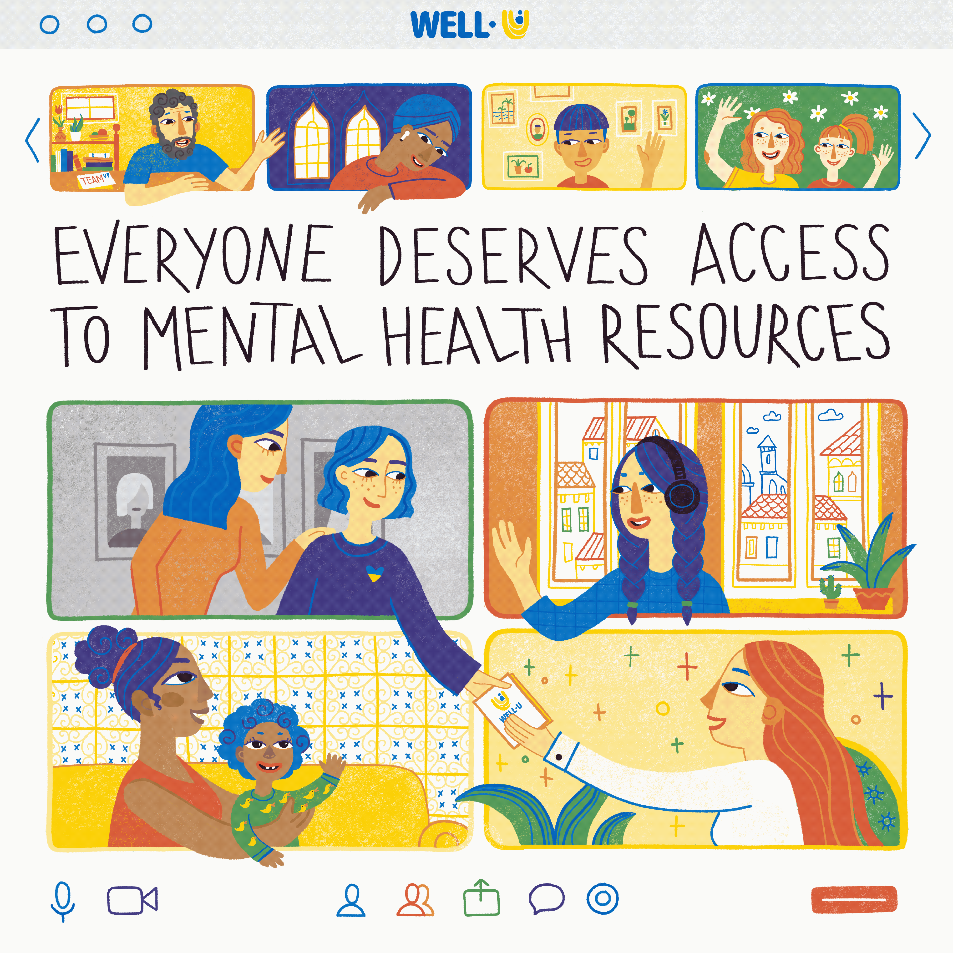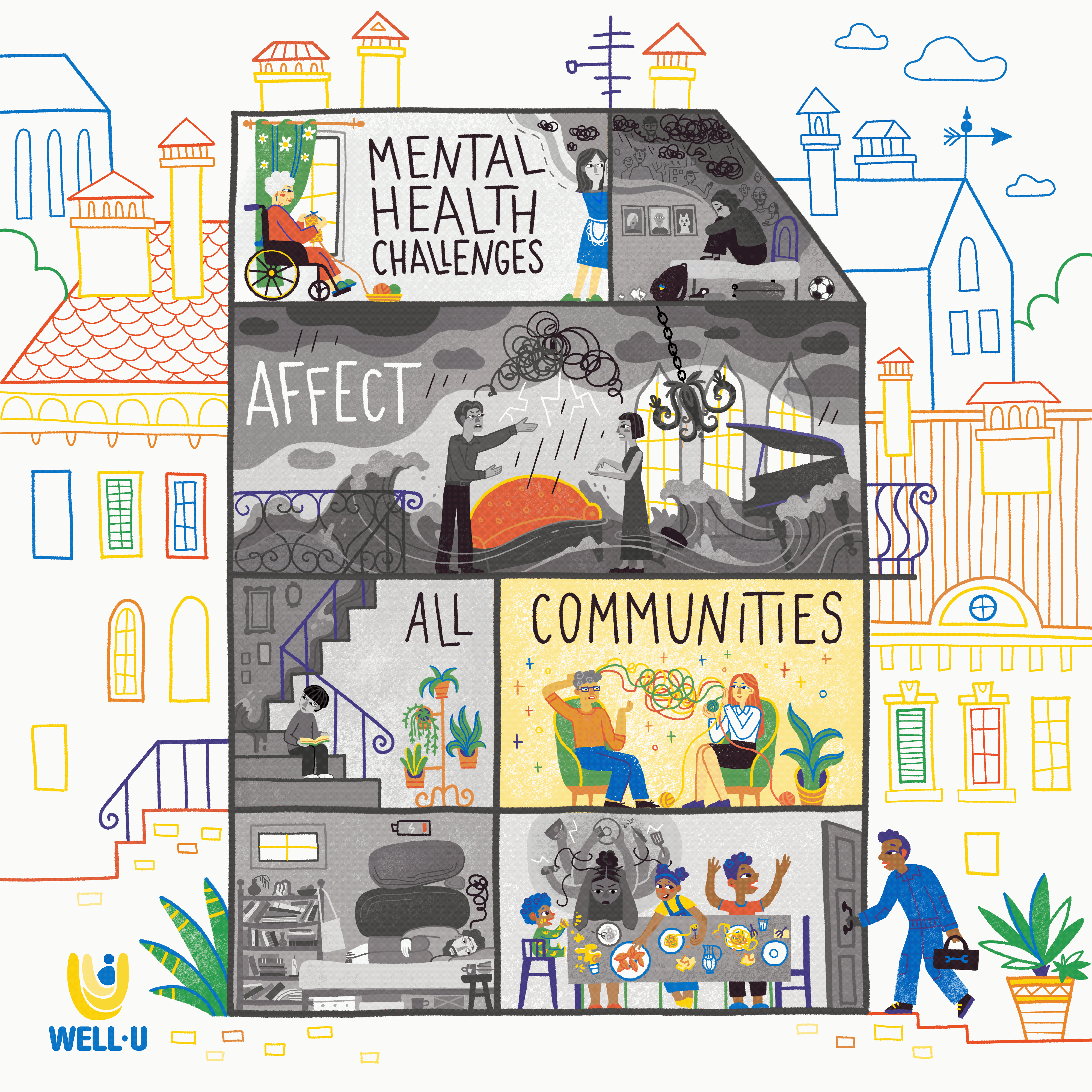In honor of World Mental Health Day, the WELL-U project, funded by the European Union HADEA, launched a powerful social media campaign aimed at raising awareness of mental health issues. The campaign is particularly focused on Ukrainians affected by the war, as well as other communities facing similar struggles. Through meaningful community engagement and culturally tailored content, this campaign seeks to break down stigma and promote mental health care for all. As part of this initiative, I created a series of five illustrations to support and visually enhance the project.
